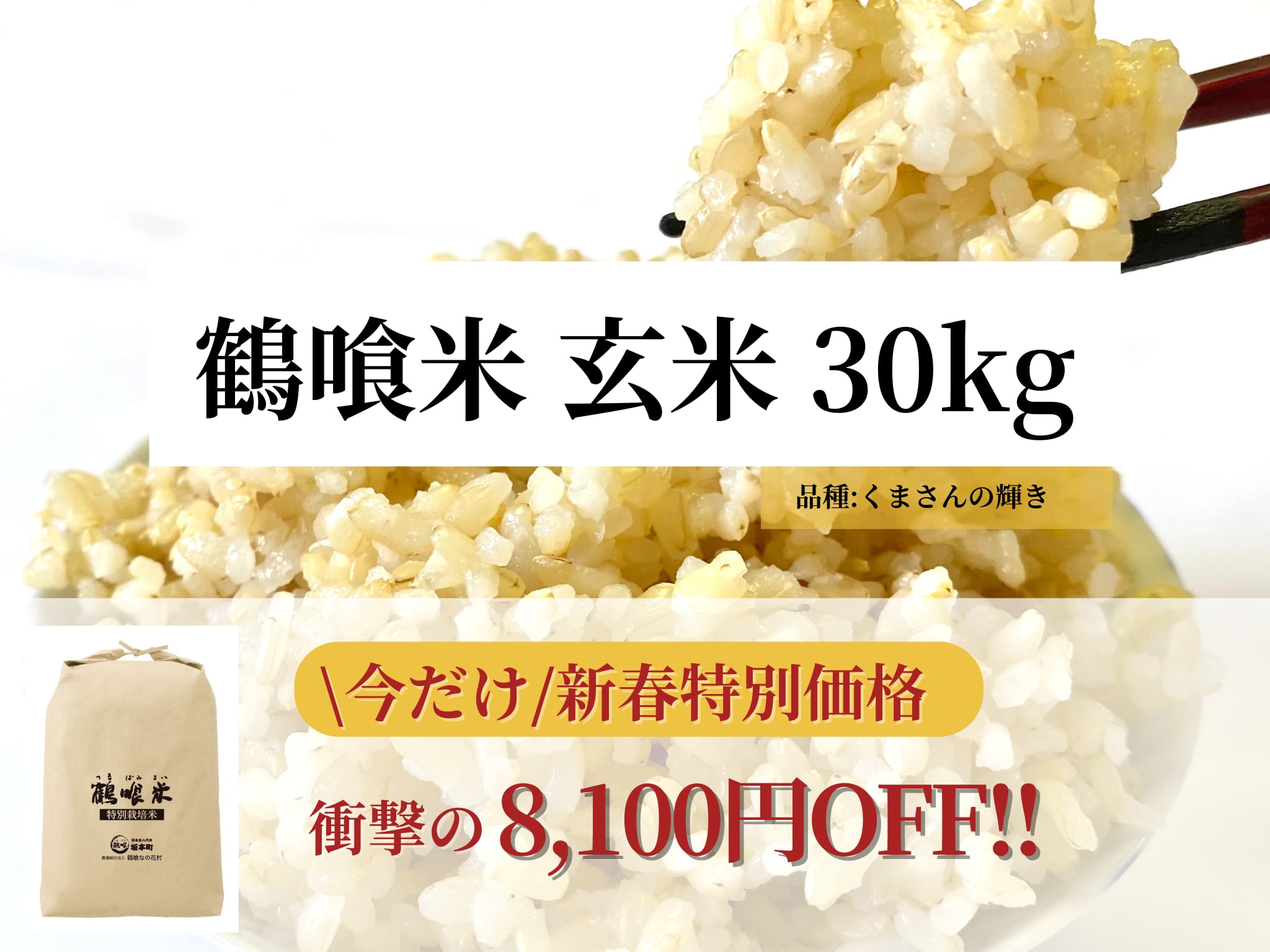 【鶴喰なの花村】★新春特別価格★玄米が大特価!! 衝撃の8,100円OFF!! 令和7年産 鶴喰米 玄米 (くまさんの輝き) 30kg