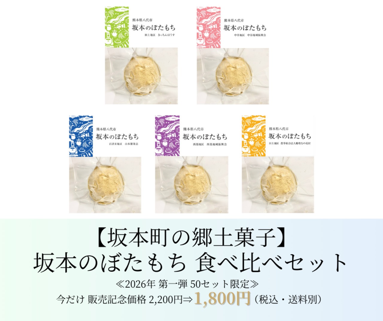 「郷土自慢のぼたもちを、より多くの方に食べていただき、大切な食文化を未来へ繋いでいきたい」また、「令和2年7月の豪雨災害で壊滅的な被害を受けた坂本町の復興に繋げたい」という想いから、新たに「冷凍ぼたもち」の商品化を実現させました。