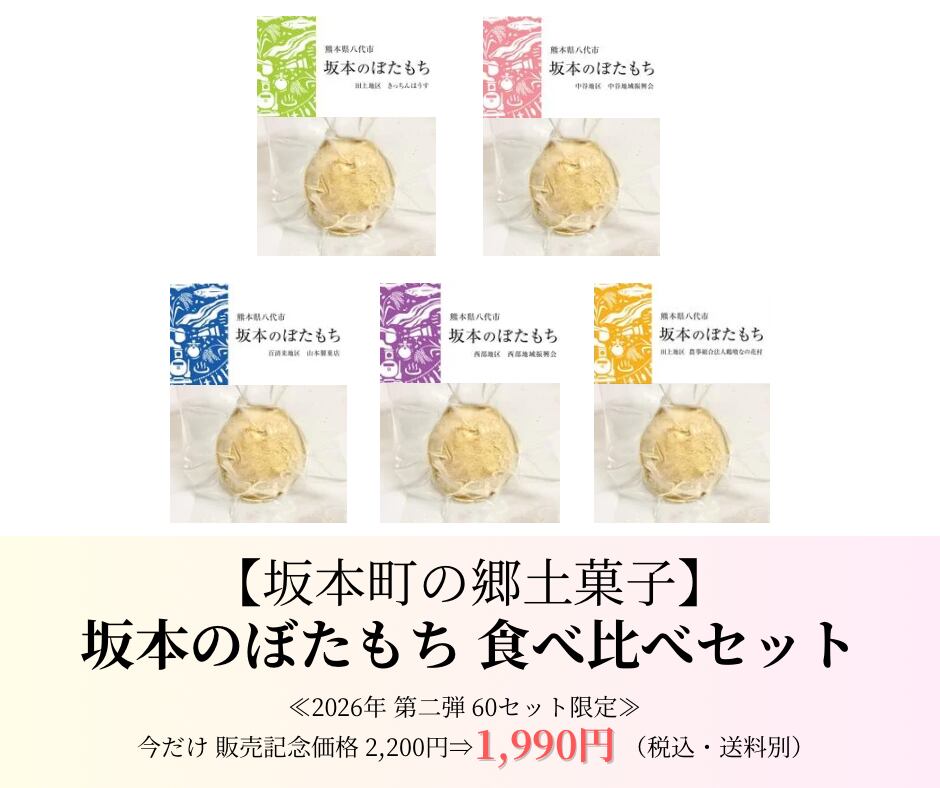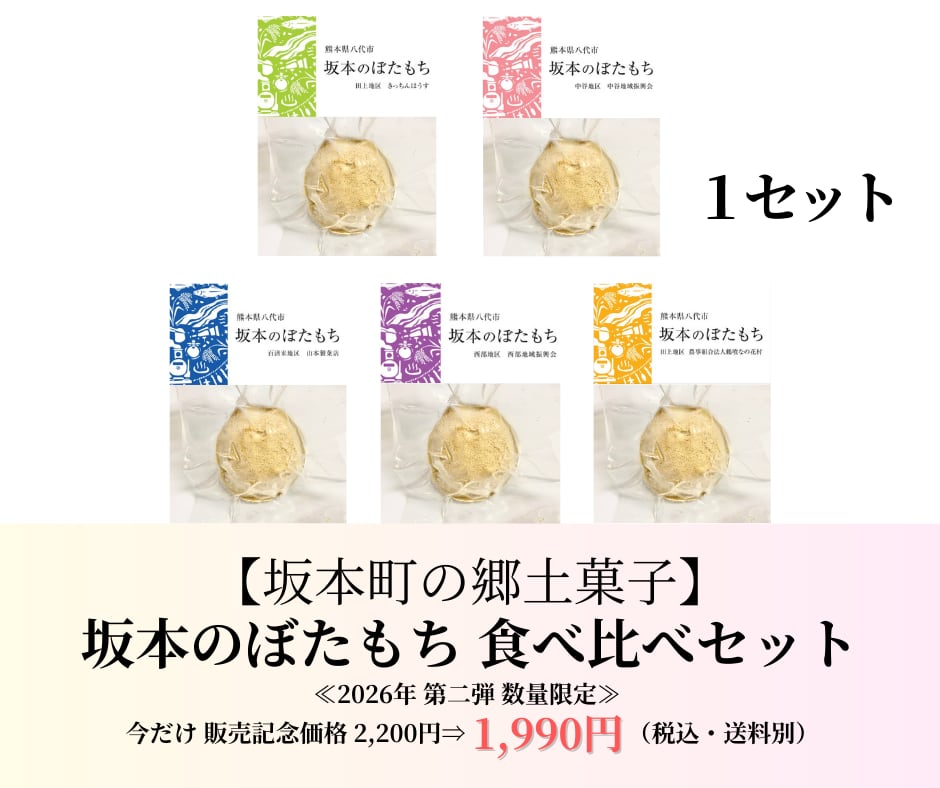 地元八代では、イベントや催事で販売すると、開店直後に売り切れてしまう超人気の郷土菓子です。消費期限の短さ、流通量の少なさ、および季節限定生産であるため入手が困難な坂本町の「ぼたもち」は、「幻のぼたもち」とも呼ばれています。